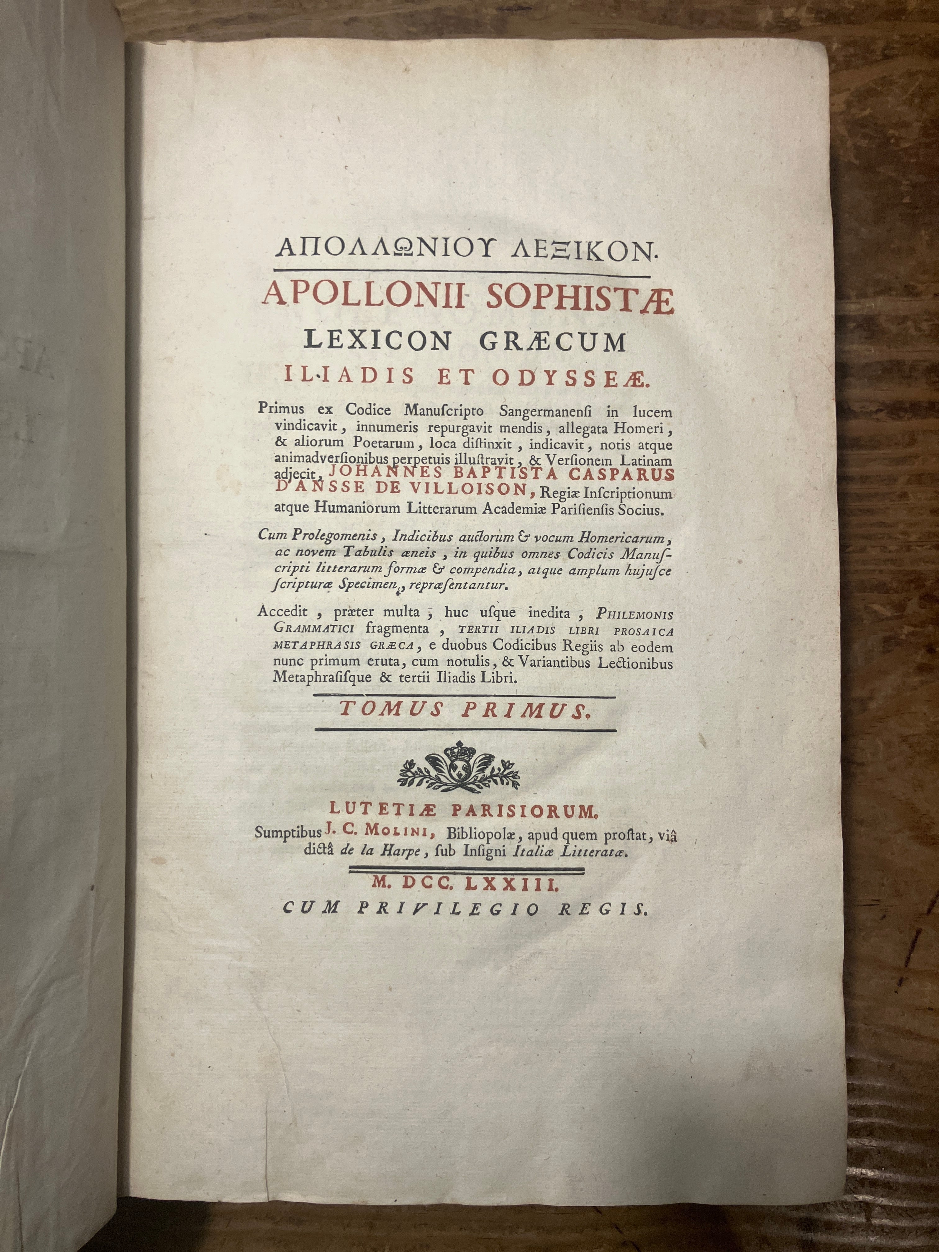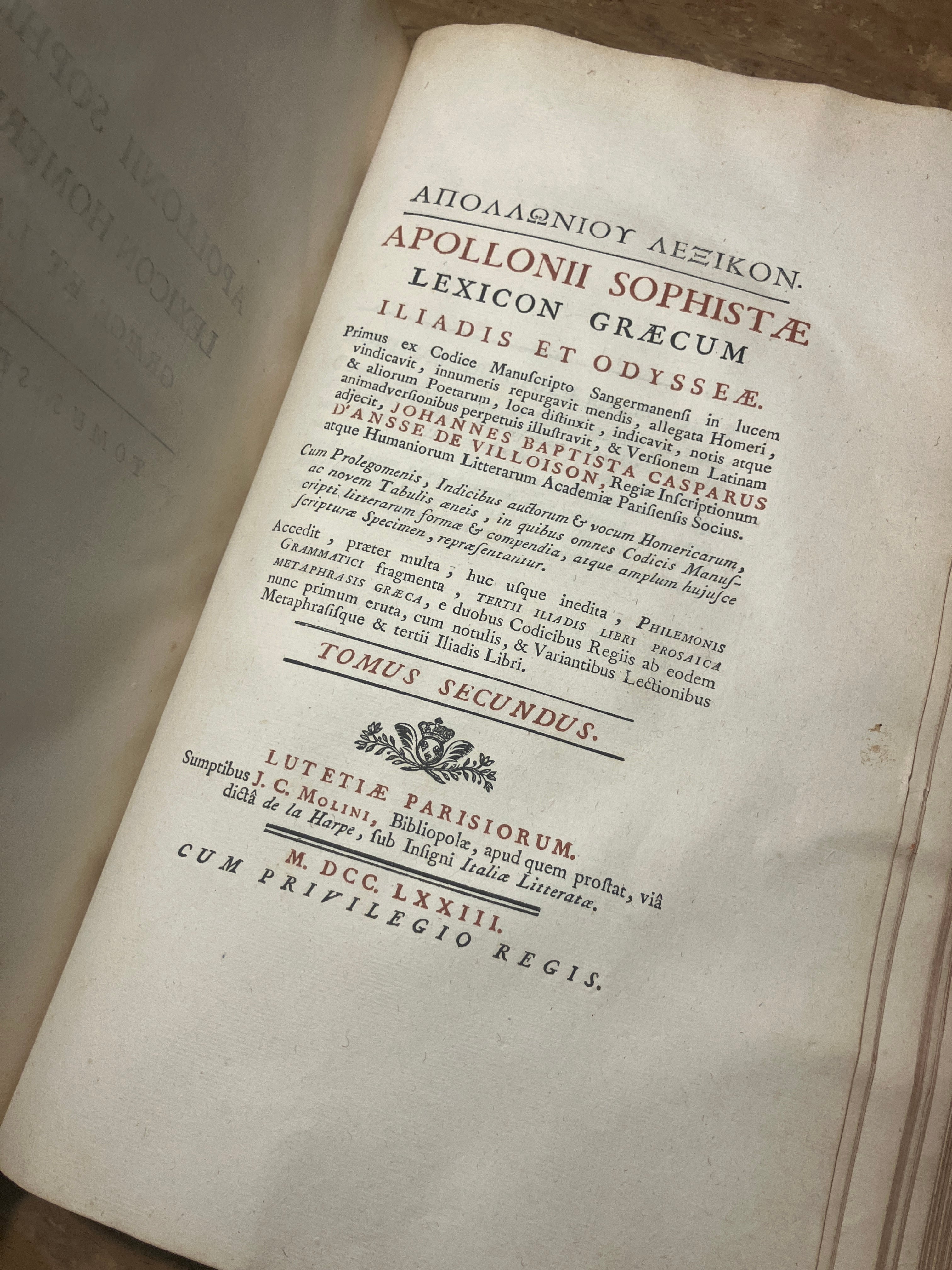 イーリアスとオデュッセイアのギリシャ語辞典1773年パリ版(フランス古書)