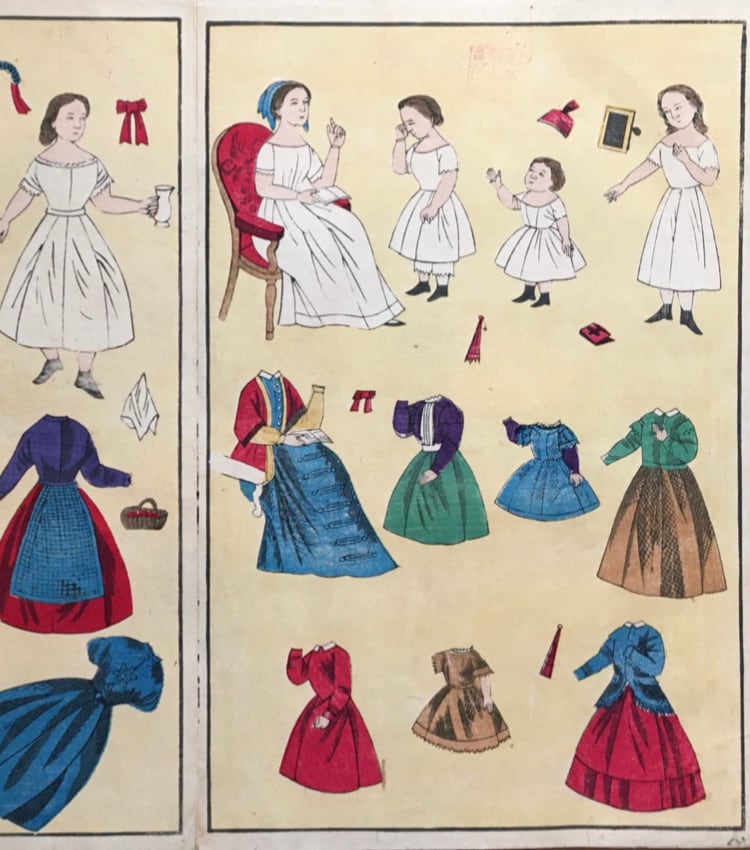 製本機械図、着せ替え人形図ほか(教育錦絵)