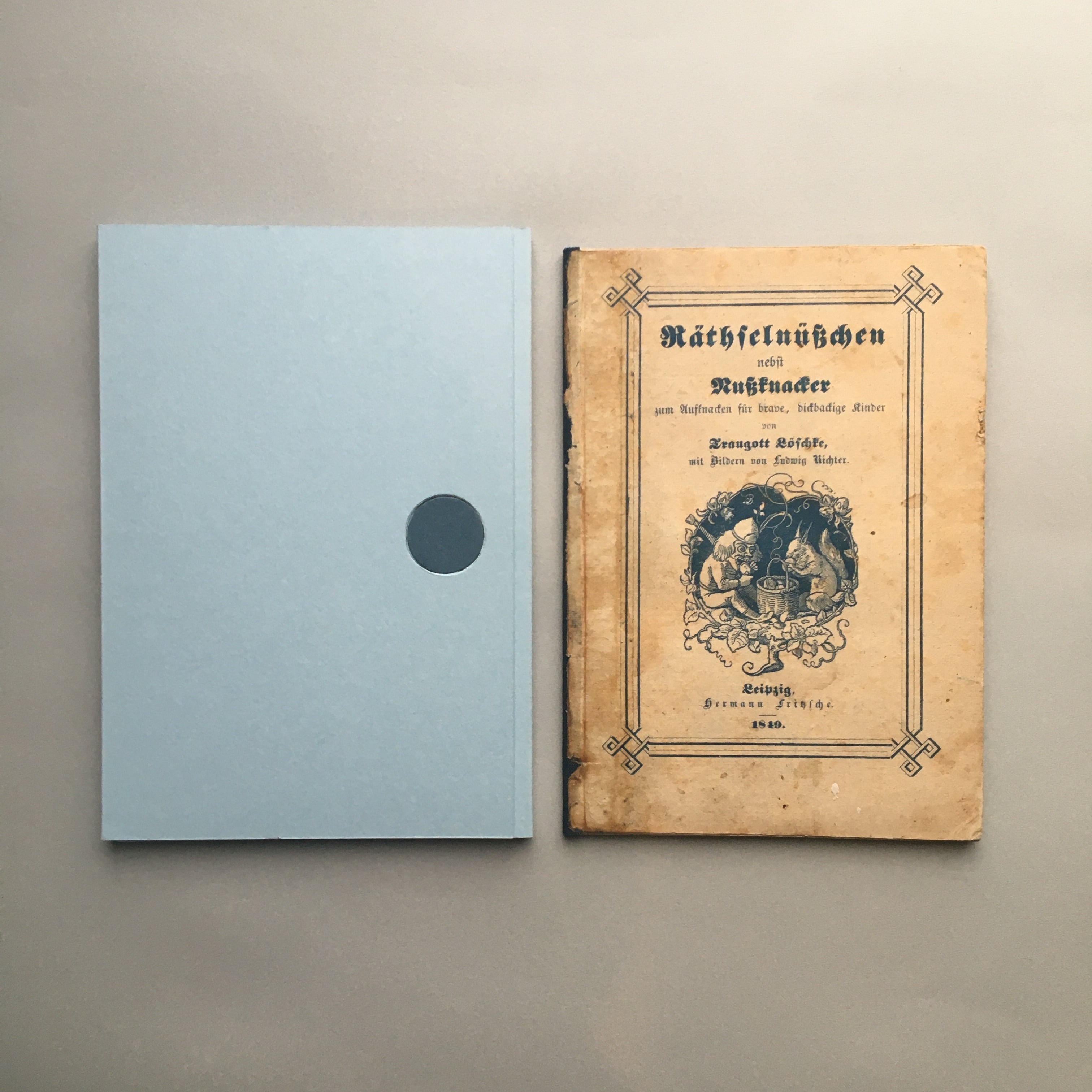 Löschke, (Johann) Traugott. Räthselnüßchen nebst Nußknacker zum Aufknacken für brave, dickbackige Kinder. Lzg., Fritzsche, 1849.
